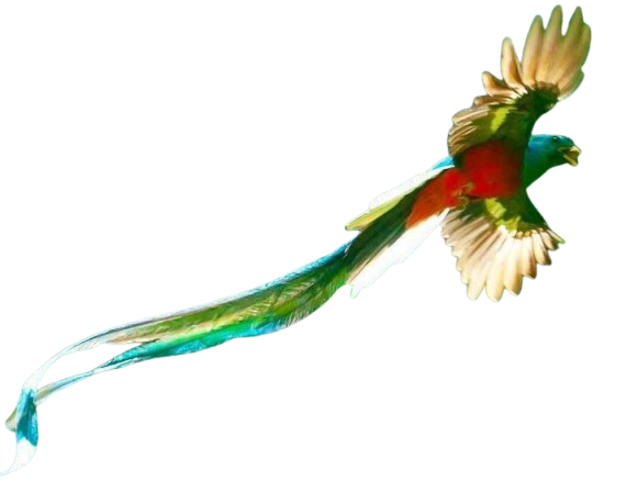 Le quetzal, dont le nom en Nahuatl signifie « grande plume verte », est un oiseau des forêts de nuages physiquement très proche de l’oiseau de paradis. I l vit en altitude et fréquente la canopée de forêts humides aux grands arbres.
